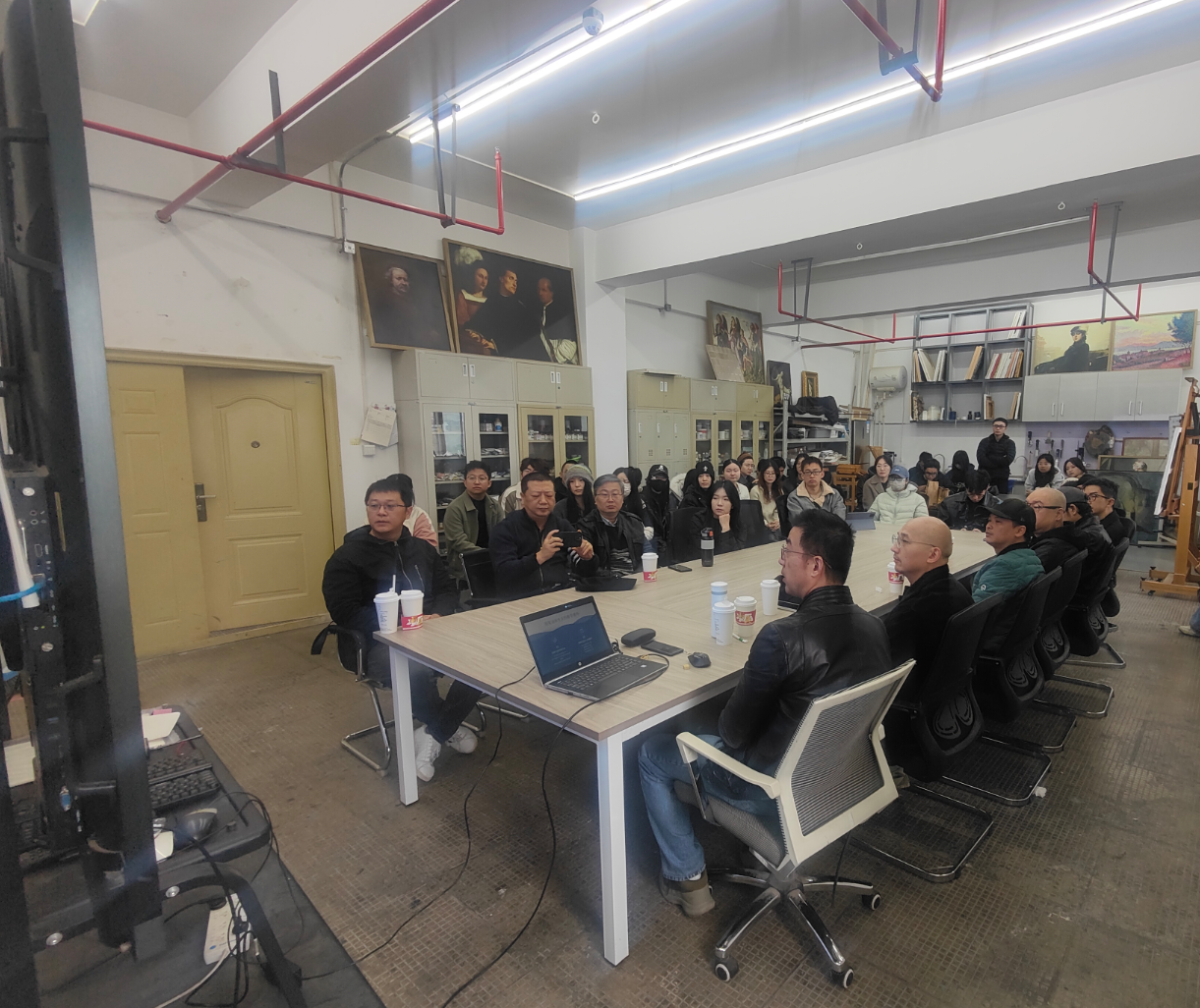 10月21日上午,中国美术学院油画系教授任志忠受邀来西安美术学院油画系举办交流讲座。西安美院油画系主任杨洋、副主任董文通及钟国昌、常诚等多位教师,与造型艺术部教师覃超共同出席,师生代表参与聆听。
